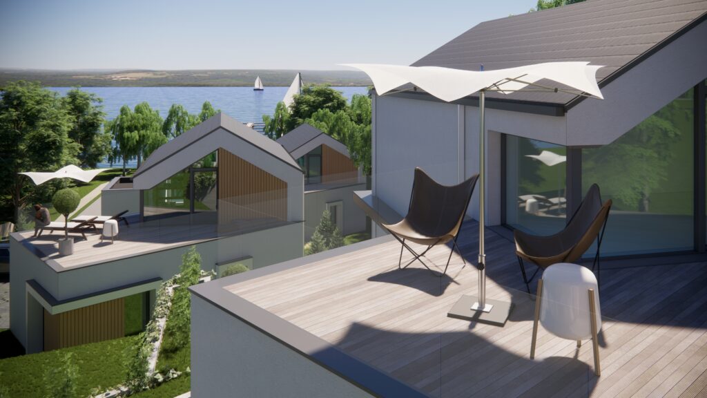 Przemyślana architektura, funkcjonalny układ, wspólna przestrzeń rekreacyjna i wyjątkowe położenie nad najdłuższym jeziorem w Polsce sprawiają, że to inwestycja bez kompromisów.