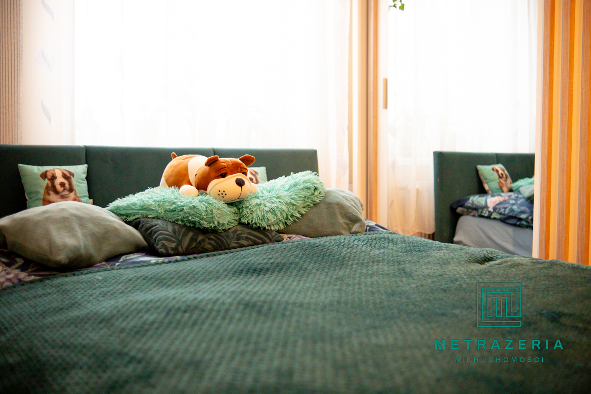 Strefa prywatna obejmuje dwie sypialnie – idealne jako pokój dziecięcy lub gabinet i sypialnia główna. Łazienka i pozostałe pomieszczenia utrzymane są w bardzo dobrym stanie – mieszkanie jest zadbane i gotowe do zamieszkania.