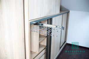 duża sypialnia z bardzo pojemnymi szafami w zabudowie i przemyślanych rozwiązaniach